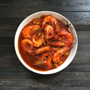 Prawns simmered in spiced onion-tomato gravy enriched with aromatic masala. Savory, tangy, and flavorful, it?s served hot with rice or naan. This dish balances the delicate taste of prawns with bold curry flavors, offering a comforting seafood experience.